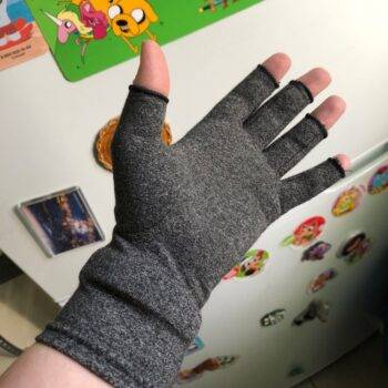 As an arthritis sufferer, I can confirm that having these compression gloves provides comfort and warmth that helps ease the discomfort of stiff fingers. I use these gloves during the workday, and I find that having the fingertips exposed is key to function by allowing tactile sense while using the computer keyboard.
