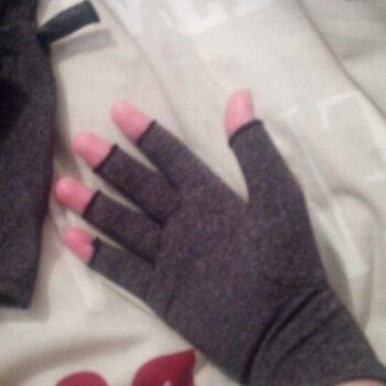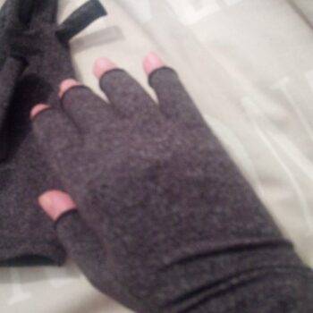 Love these gloves. When I'm in a lot of pain, they help a little, but when I wear them along with my hand brace, they work great together. I think these will be awesome this winter, when my hands are cold. I mean for in the house, not to wear outside, since they have no finger tips. My hands always get cold when I'm working at the computer. These are comfy & cozy.