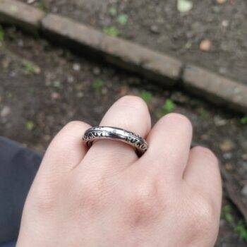 So unique and makes for a great fidget ring! Very happy with this purchase, I don't even care that it probably has an ancient curse written on it