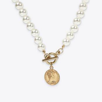 Chic Double Layer Pearl and Metal Necklace with Colorful Love Pendant