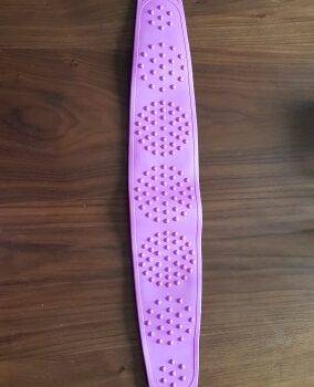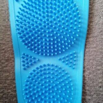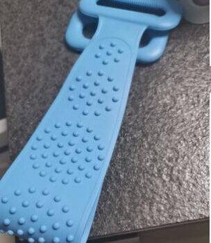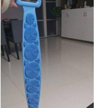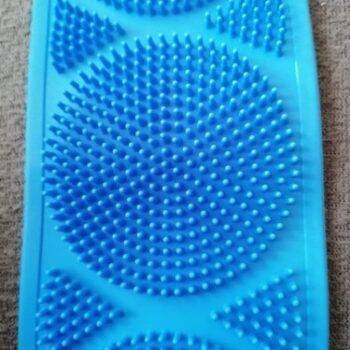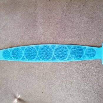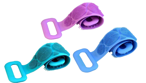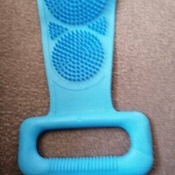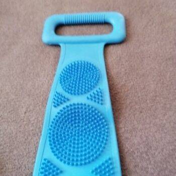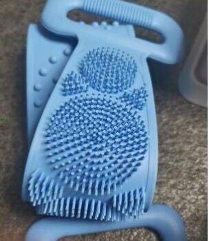 I really like this back scrubber. It is dual sided which is nice. The length of the bristles is perfect. They're not too long so you can actually scrub. It still cleans well and Its silicon material is mildew resistant.